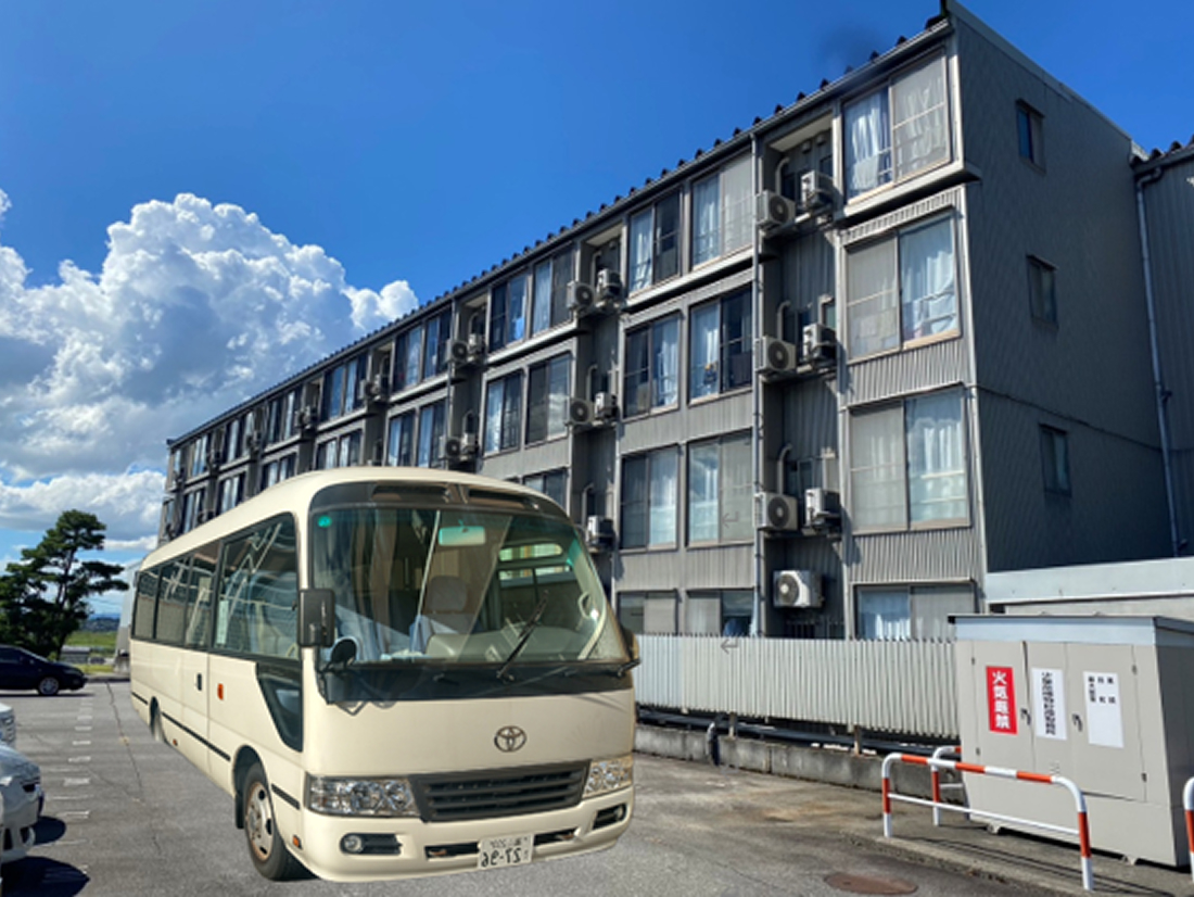 平日は学生マンションから五福キャンパスへのバスを2便常時運行しているので、車がなくても通学に困りません。富山大学の学生の皆さんの豊かなキャンパスライフをサポートします。